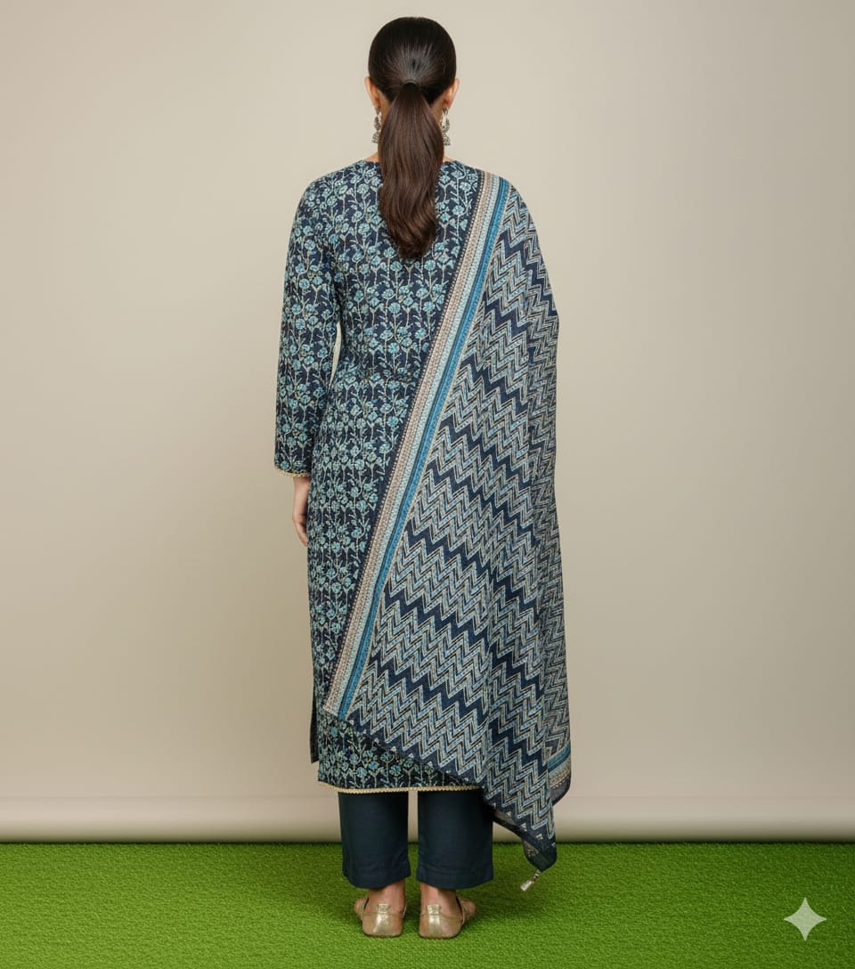 3 Piece Khaddar Printed Slub Viscose Suit