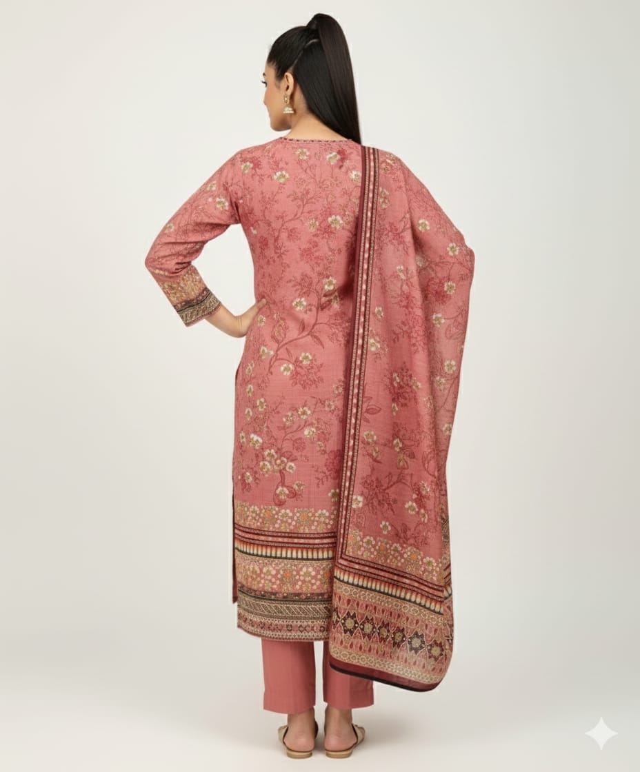 3 Piece Printed Khaddar Suit Stitched with Dupatta