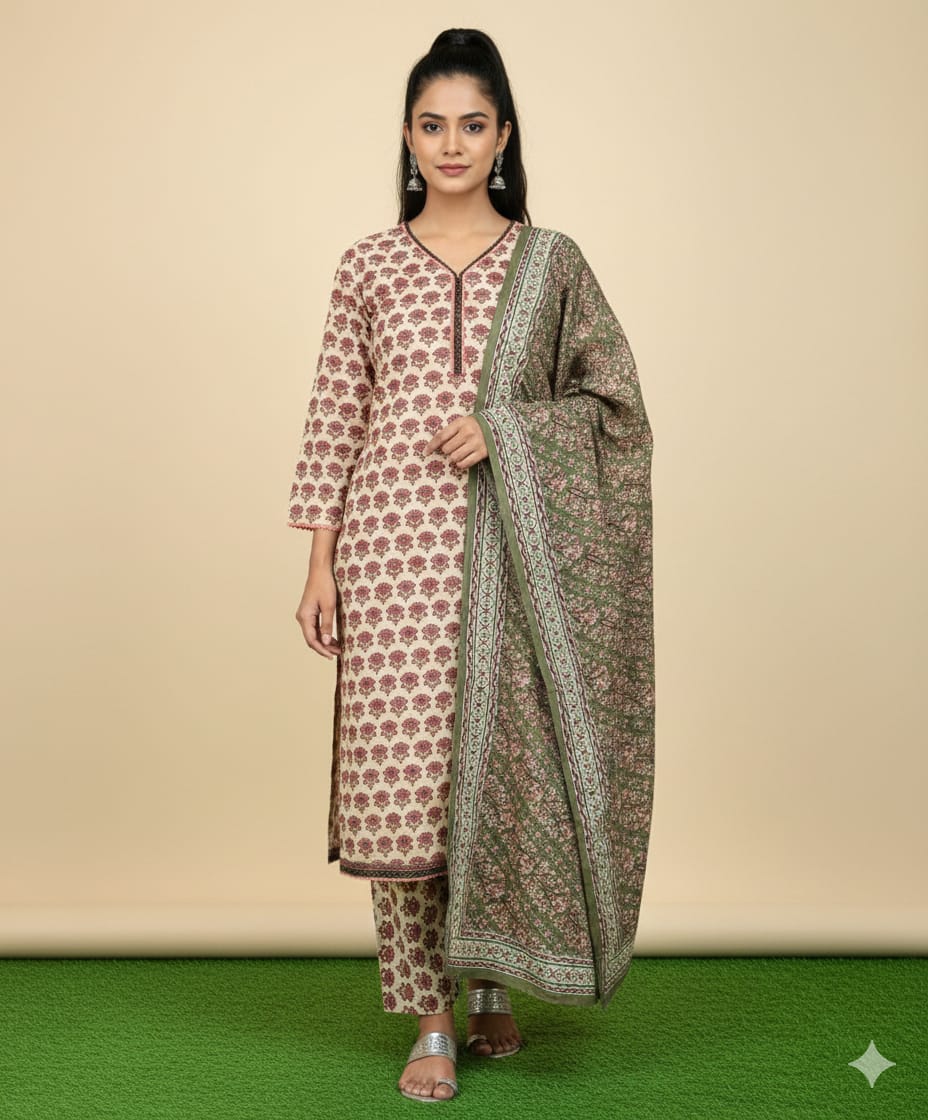 3 Piece Printed Khaddar Viscose Suit